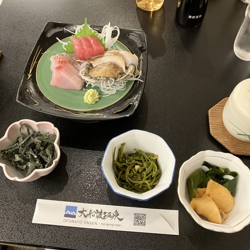 夜と朝に温泉に入ったのですが、三陸の海が望めてとてもいい景色でした。